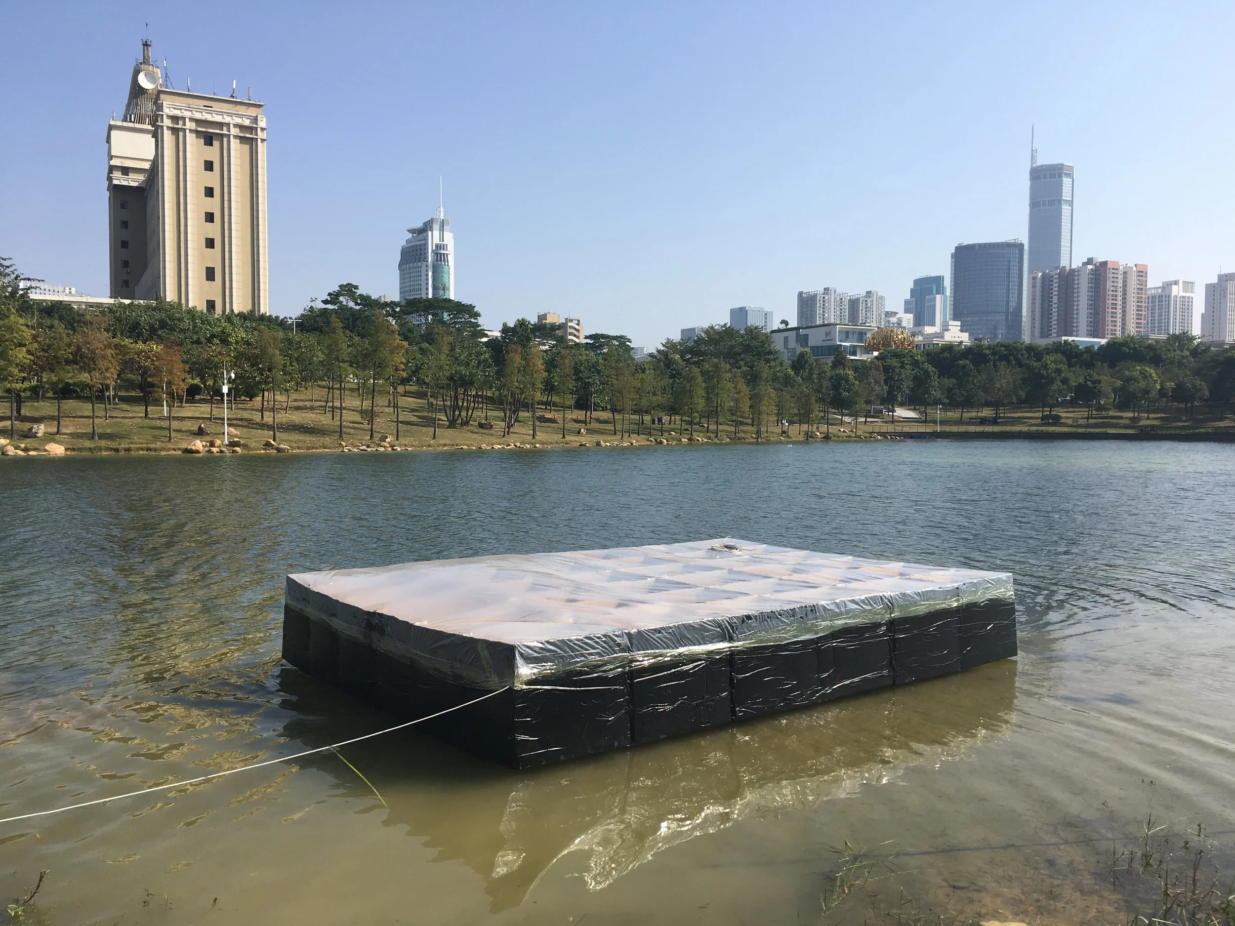 A special relationship is formed between the permeability of seawater in the boxes and the impermeability of the water-proof packing boxes, thereby attempting to probe the subtle balancing relationship among the Cross-strait four regions at a deeper level. Meanwhile, via the correlation between the different attributes of the materials, the artwork attempts to provide a nervous, fragile and doubtful atmosphere as a metaphor for the tension between objects in different geographical environments.